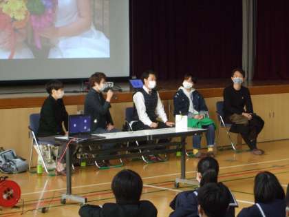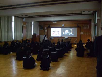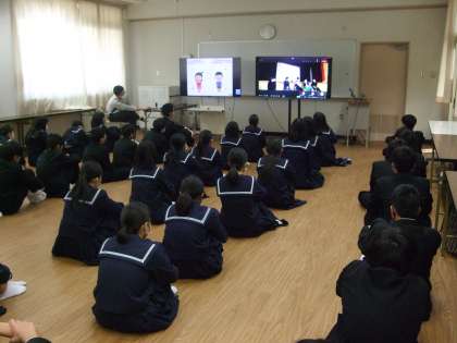 12月12日(土)、暁プロジェクトの大久保暁さんたち5名の方を講師にお招きして、人権講話をおこないました。新型コロナウイルス感染症対策により、全学年が体育館に入ることができないため、Teamsを使い、3会場に分けて実施しました。