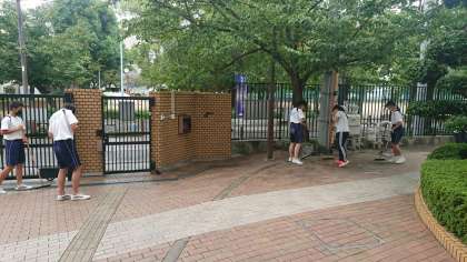 本日は午後から体育大会の準備に取り組み、先生と係生徒が協力して会場づくりを行いました。