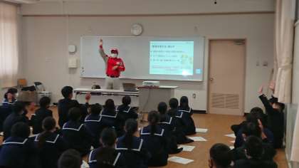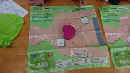 防災講義を受けた後、胸骨圧迫実習を含め、救急救命法を学習しました。