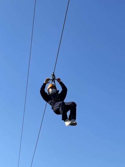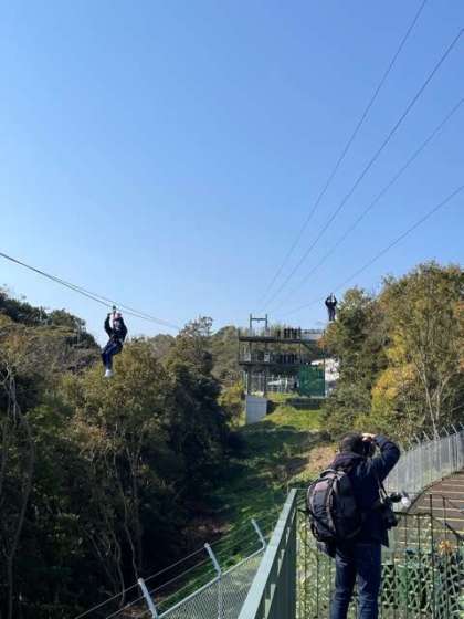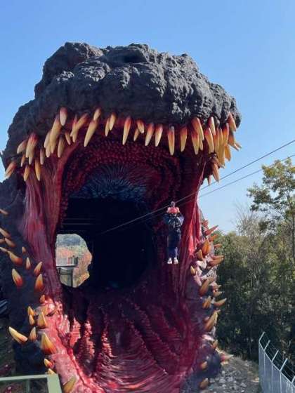ゴジラエリアでら青空を背景にジップラインを楽しみました。