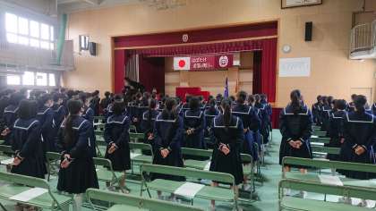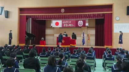 本日、明日の卒業式に向けての予行練習を行いました。卒業生は本番さながらの緊張感を持って取り組んでいました。