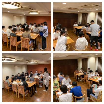全員がホテル集合時間に間に合いました!各クラスの室長会議が行われ、夕食が始まりました。