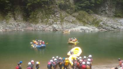 各艇に乗り込んで出発です!水もきれいで川底がよく見えます。気持ちよさそうー。