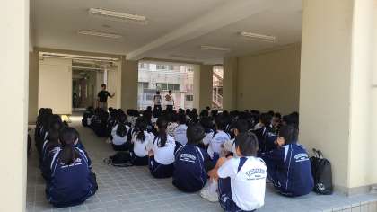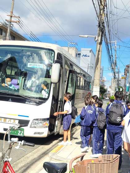2年生は出発式が終わり、吉野宮滝野外学校に向け元気よく出発しました。