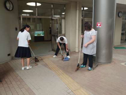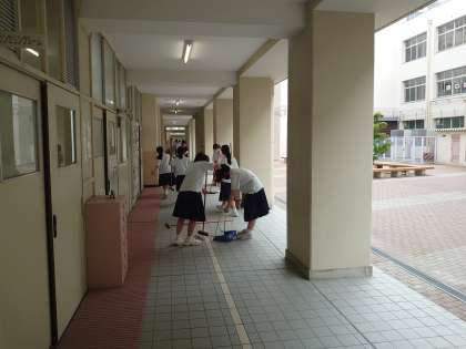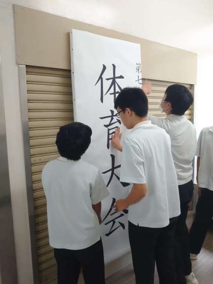 本日は給食後、係生徒が残って、教職員と協力しながら明日の体育大会に向けての準備を行っています。