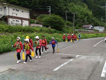今、先頭のクラスがボートから上がりゴールに帰ってきました。表情はいろいろですね〜