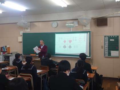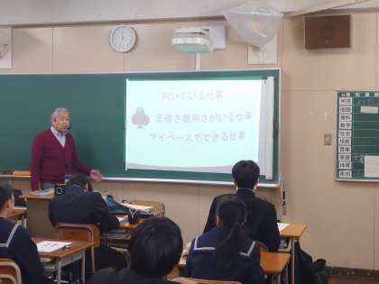 本日、ヒューマンキャンパス高等学校の川島先生を講師としてお招きし、1年生の各教室でキャリア教育を行いました。内容はSPトランプを活用しての自己理解。自分の長所や性格、どんな仕事に向いているかなど、興味深く取り組んでいました。