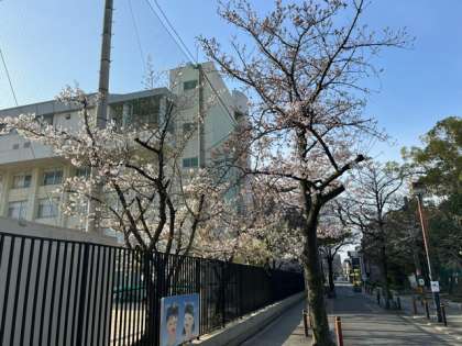 学校の前の桜も咲き始めています。