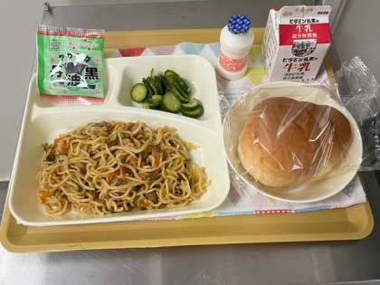 焼きそばとパンの給食でした。
