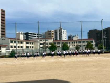 今日は晴れて、運動場でも体育の授業を行っています。