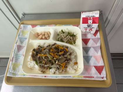 今日の給食は牛丼です。