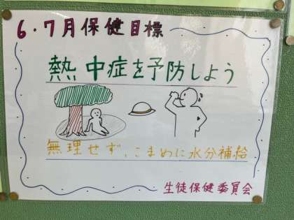 暑さが厳しい季節となりました。 保健委員会でも、啓発活動をしています。