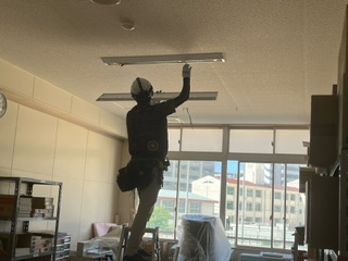 夏季休業期間を利用して、大阪市教育委員会により、LED照明付け替え工事が行われています。