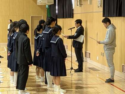 その後、吹奏楽部の生徒に賞状伝達を行いました。