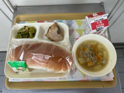 今日は、押麦のスープがありました。