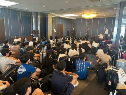 退所式が始まりました。 この後、1日目のホテルを出発し、白石島に向かいます。