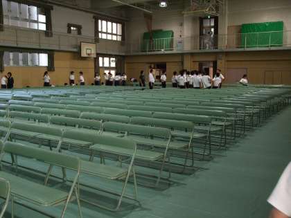 明日の19日(金)は文化祭です。舞台発表の会場設営や展示の飾りつけなどの前日準備を行いました。