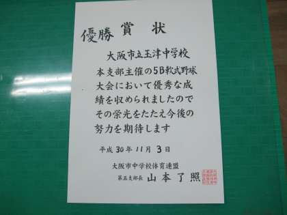 11月3日(土)、野球部が5ブロック大会の決勝戦で勝利し、優勝しました。さらなる高みを目指して頑張ります!