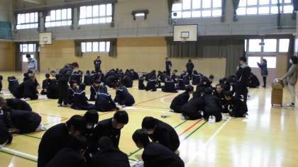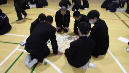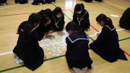 当初予定されていた日程より遅れてですが1月29日(火)6限百人一首大会が行われました。どのクラスもみんな真剣に頑張っていました。上の句を覚えていた人はとても早くとっていましたね!日本の伝承遊びに触れながら、和歌に親しむいい機会にしてください。結果は学年集会で発表されます。楽しみにしておいてください!