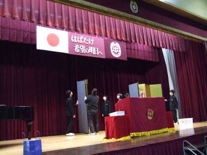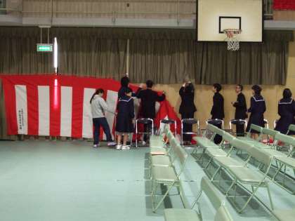 明日14日の卒業式に向けて、1・2年生の係生徒で前日準備をおこないました。