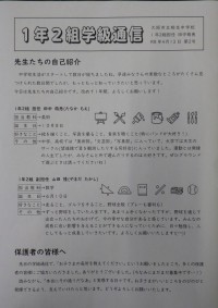 1年2組学級通信 (1年2組学級通信 第2号、4月13日発行)先生たちの自己紹介 中学校生活がスタートして数日が経ちましたね。早速みなさんの素敵なところがたくさん見つけられた数日間でしたが、もっともっ...
