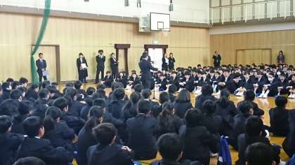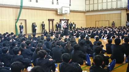 生徒会役員認証式に引き続き、生徒会による対面式を行いました。1年生の皆さん、一日も早く中学校生活に慣れ、勉強や部活動に頑張ってください。写真は、「在校生代表の歓迎の言葉」と「新入生代表のあいさつ」です。二人とも大変立派な言葉とあいさつでした!
