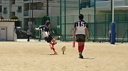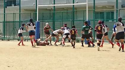 前半の様子です。1トライを取られるものの、押し気味に試合を進め、19−7で前半を終えました。