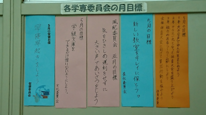 学専委員会の月間目標です。目標達成に向けて、皆さん頑張りましょう。