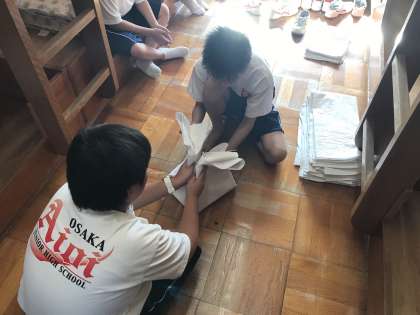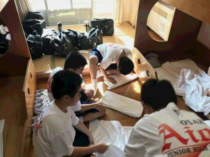 おはようございます。みんな元気です。部屋ごとに寝具の整理を行っています。
