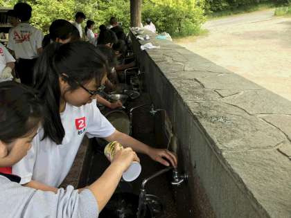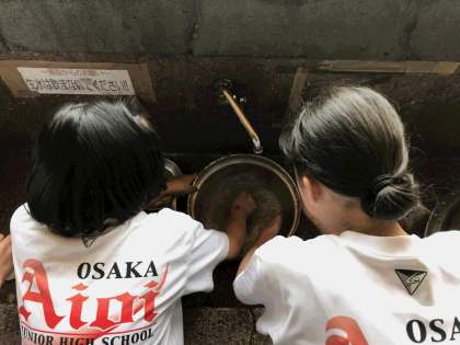 昼食が終わり後片付けをしています。