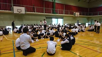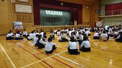 交流会の様子です。幟町中学校と相生中学校の生徒数名ずつ、一つのグループとなり交流会を持ちました。少し緊張しましたね。