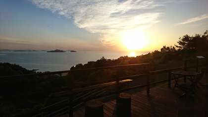 おはようございます。今日も天気は快晴です。この後、起床、朝食、そして、ラフティング会場の吉野川に向かいます。