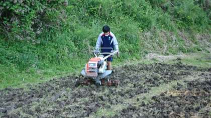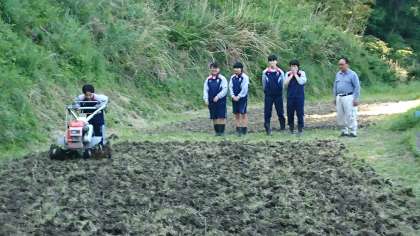 民泊先での体験です。農業体験で耕運機を操縦させていただいていました。本当に貴重な体験です。