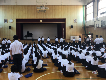 同じく全校集会の中で、6月2日に開催されました「第十五回日新ドリームカップ大会」において、準優勝されたラグビー部の表彰を行いました。おめでとうございます。よく頑張りました!