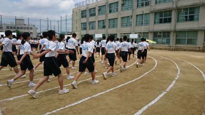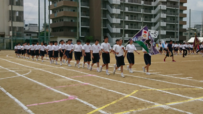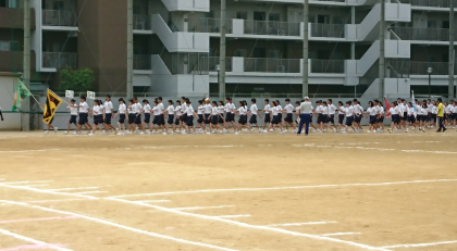 本日、体育大会予行を実施しました。「入場行進」 の様子です。