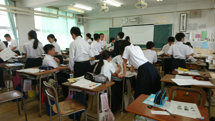 教育実習も今週限りとなり、本日の3時間目、英語科の教育実習の先生が1年4組で研究授業を行いました。実習生の先生、お疲れ様でした。また、1年4組の皆さん、ありがとうございました。