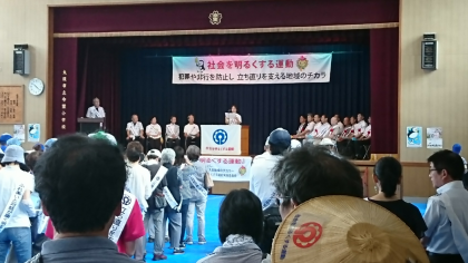 本日、第69回東成地区「社会を明るくする運動」区内啓発パレードが開催されました。「社会を明るくする運動」とは、すべての国民が犯罪や非行防止と罪を犯した人たちの更生について理解を深め、力を合わせ、犯罪や非行のない明るい社会を築こうとする全国的な運動のことで、毎年7月が強調月間となっています。