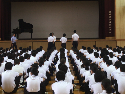 同じく全校集会の中で、「第三十回伊藤園お〜いお茶新俳句大賞」において入賞された生徒たちの表彰を行いました。おめでとうございます。よく頑張りました!