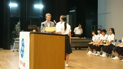 本日、社会を明るくする運動「朗読と音楽のつどい」が東成区民センターにて開催され、本校1年生の生徒2名の作文が表彰されました。