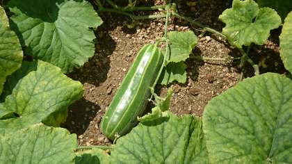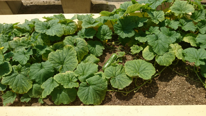 6月17日に植えた、なにわの伝統野菜「玉造黒門越瓜(たまつくりくろもんしろうり)」の実が育ってきました。さらに大きく育ってくれることを楽しみにしています。