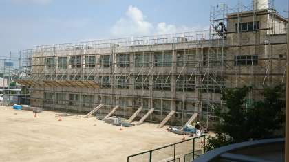 現在、12月26日までの工事期間の予定で北館校舎の外壁改修工事を行っております。工事期間中は、ご不便・ご迷惑をおかけいたしますが、生徒の安全確保を最優先に工事を進めてまいりますので、ご理解とご協力を賜りますようお願い申しあげます。