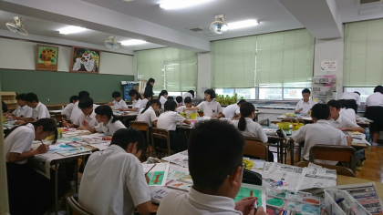 6時間目の1年生の美術の授業の様子です。「漢字の感じをあらわそう」という授業内容でした。それぞれが絵にしてみたい漢字を選び、工夫してデザインしていました。