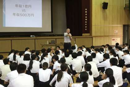 本日、2年生は10月31日・11月1日に行う職場体験学習に向けて「職業講話」を行いました。ヒューマンキャンパス高校の先生を講師としてお招きし『働く事と幸せ』というテーマでお話をしていただきました。2年生の皆さんには、本日のお話をしっかりと職場体験に活かしてほしいと思います。