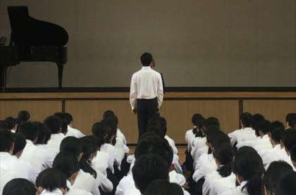 同じく全校集会の中で、10月19日に開催されました「大阪中学校総合体育大会体操競技の部」において、男子個人総合第6位に入賞された3年生の生徒の表彰を行いました。おめでとうございます。よく頑張りました!