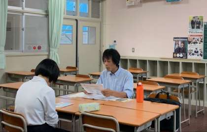 本日の放課後、英検二次試験(面接)の対策模擬練習を行いました。実際の面接形式で、返答のポイントなどを教えていただきました。ご協力いただきました地域の英会話スクールの先生方には大変お世話になりました。心より感謝申しあげます。ありがとうございました。尚、本番は11月3日(日)です。頑張ってください!