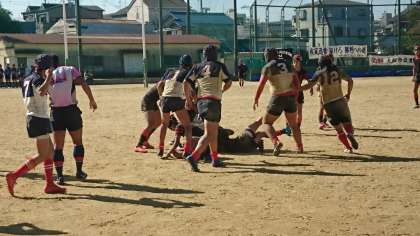 試合は両チーム一進一退の攻防が続きましたが、終了間際に逆転トライを挙げ、20−19で見事勝利を収めました。おめでとうございます。本当によく頑張りました!