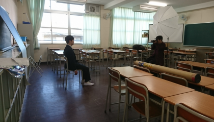 卒業アルバム用の個人写真撮影の様子です。先生方も撮影しました。卒業が近づいてきたことを実感しますね。
