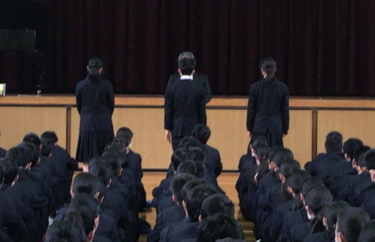 本日の全校集会の中で、「大阪市立中学校管打楽器ソロコンテスト」において、金賞・銀賞を受賞された吹奏楽部の生徒たちの表彰を行いました。おめでとうございます。本当によく頑張りました!
