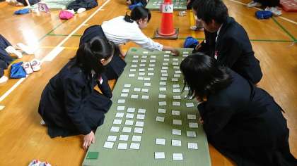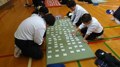 本日、1年生は百人一首大会を行いました。生徒たちは、一枚でも多く取ろうと一生懸命に取り組んでいました。