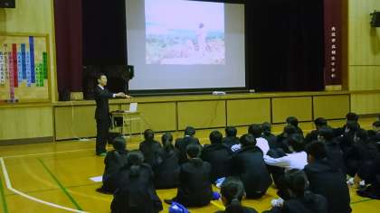 本日の5時間目、2年生はキャリア教育の一環として、JICA(独立行政法人国際協力機構)の方をお招きして、国際協力出前講座を行いました。生徒の皆さんには、日本で当たり前にできることができない国が世界にはあるということを理解するとともに、日本だけではなく世界に目を向け、グローバル人材に育ってくれることを願っています。また、本日の講座を通じて、自身の将来の参考にし、中学校生活を充実させてくれることを期待しています。
